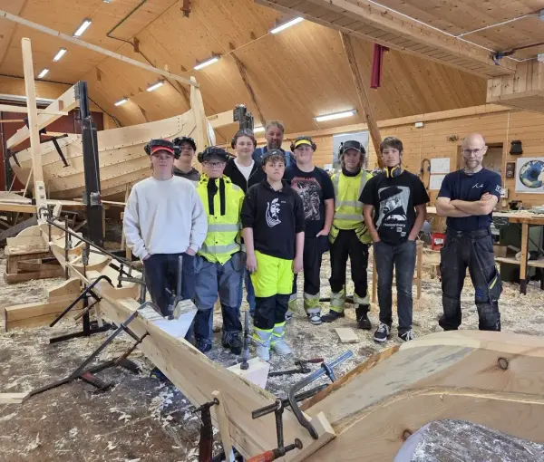 Dette er noen av de elevene som er med på bygging av fiskesjarken. Museet Kystens arv - 2/5