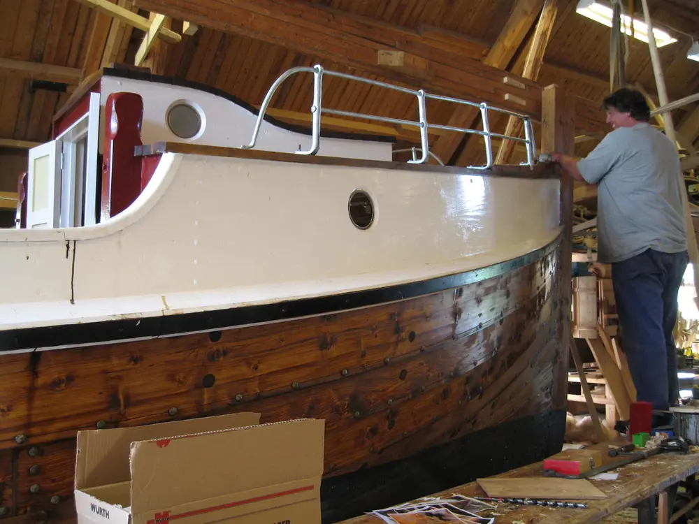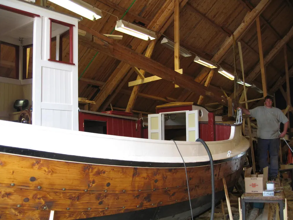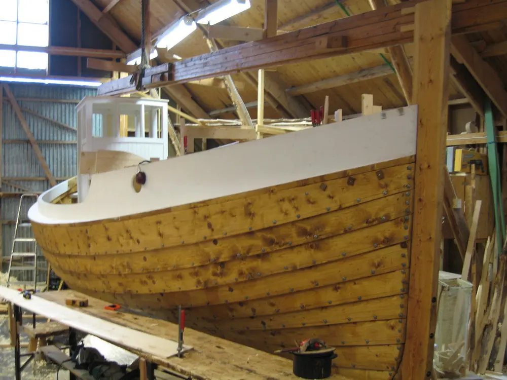 I 2007 bygde vi den første børsabåten som er bygd i trøndelag på 50 år." Eivind", på 29 fot, er en 7/8 dels kopi av børsabåten "Falken", som i dag står på Bjugn Bygdatun. Den har et styrhus bak, en liten bakke (kahytt) framme, og en hjelperigg med fokk, storseil og mesan.
