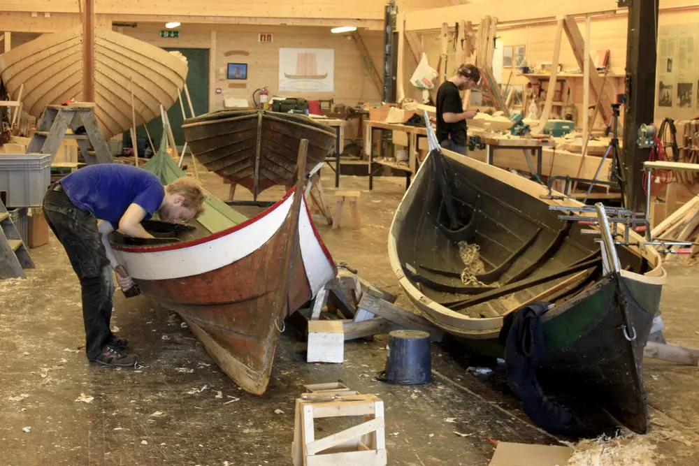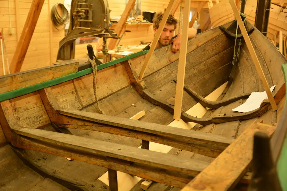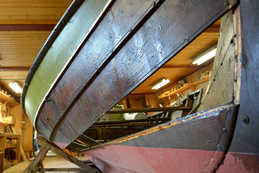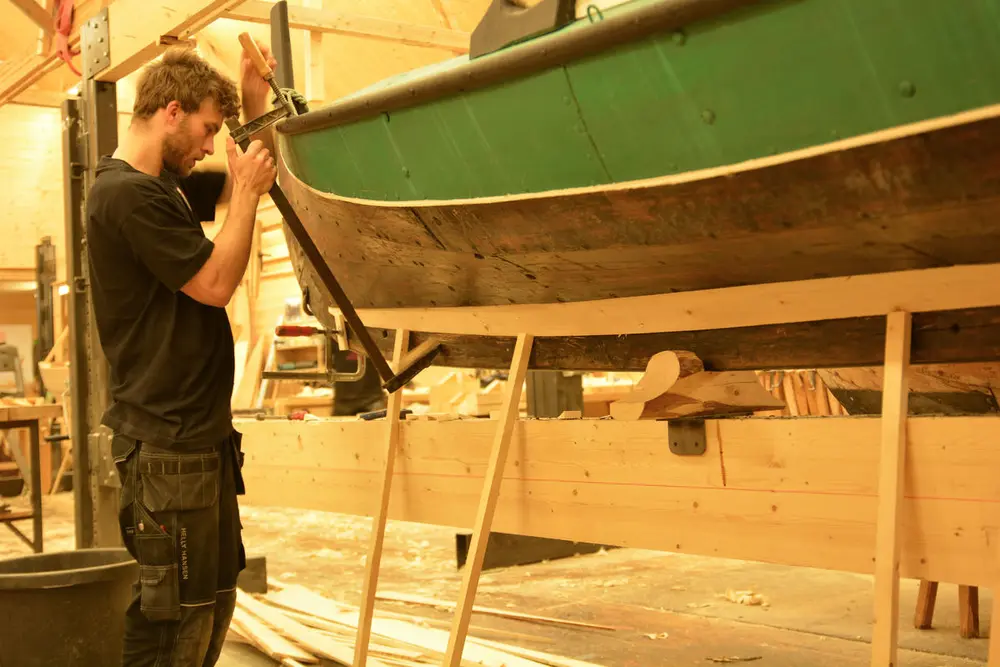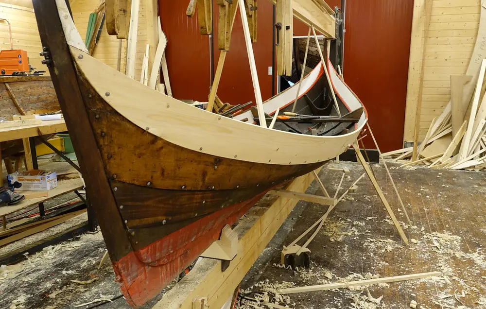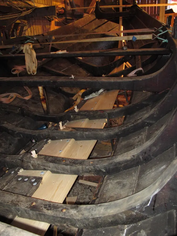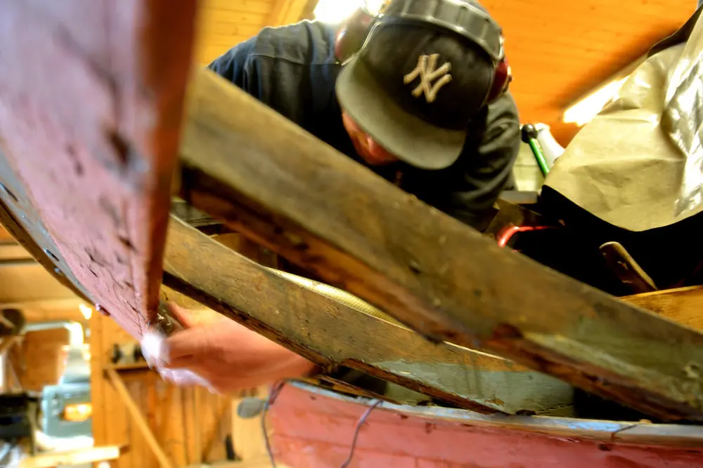 Vi utfører alt av treverksreparasjoner på klinkbygde båter: skifting av bord, bøting av sprekker, utskifting av råttent tre, osv. Hvis båten er for utslitt til at den kan settes i stand, bygger vi gjerne en kopi.