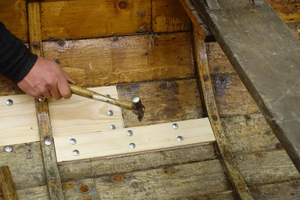 Ved små sprekker kan ei lusing være nok: å frese ut et spor i båtbordet, og legge inn et nytt trestykke. - 7/18