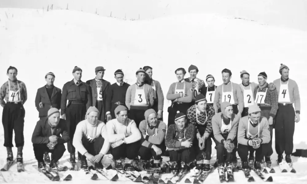 De 22 løperne som representerte Stadsbygd Idrettslag under det første kretsmesterskap for Fosen skikrets etter at kretsen vart stifta høsten 1946. Det var Ingdal Idrettslag som arrangerte rennet i Grostadkleiva 3.mars 1947. I tillegg hadde idrettslaget Fjell-liv i Markabygda med 11 deltakere slik at det var til sammen 33 deltakere fra Stadsbygd på dette rennet. Fra venstre foran: Jakob Ersland, Ole J. Vårum, Einar Askim, Andreas Blomli, Edvin Bellingsli, Sigvald Vårum, Bjarne Askim og Olav Kirkemyr. Bak fra venstre: John Trangsæther, Lyder Halvei, Edvart Askim, JOhan Valså, Bjarne Halvei, Erling Kråkmo, Ola O. Skråstad, Oddvar Blomli, Konrad Vårum, Johan N. Foss, Olav Finserås, Oskar Tetliaune, Petter Bellingsli og Johan Tetliaune.