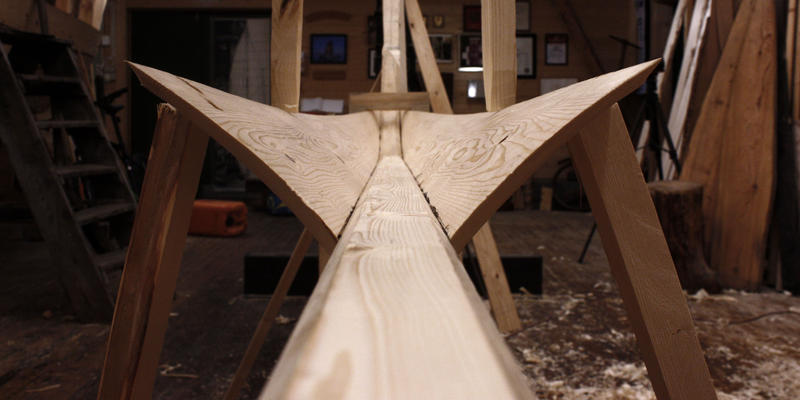 Innveden - band,  beter og knær - lages av røtter og greinkrok som har vokst i riktig fasong. Treet blir sterkere når fibrene i treet følger formen.