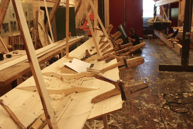 Båtbyggerne bruker mange tradisjonelle verktøy, som er spesialisert til klinkbygging av båt. Dette er båtklemmer, som brukes til å feste neste bordgang til båten før den klinkes på.